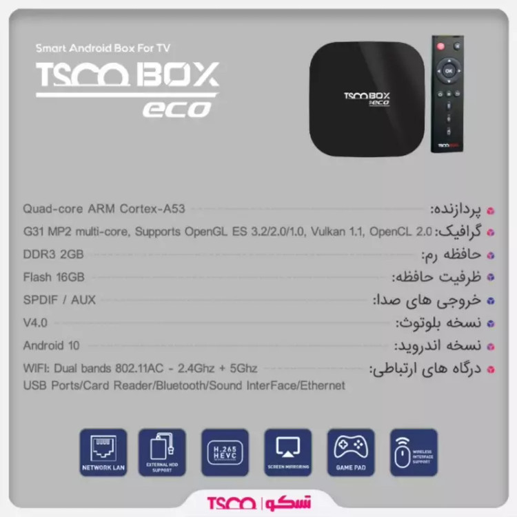 اندروید باکس تسکو مدل ECO (به همراه اشتراک رایگان)