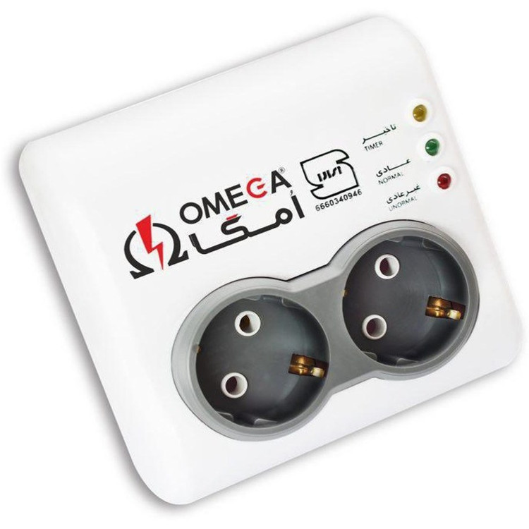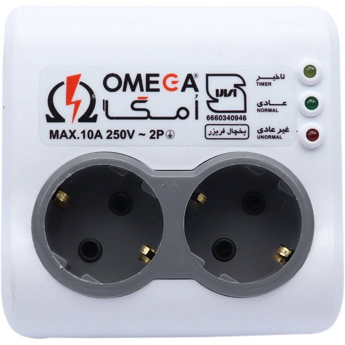 محافظ برق امگا مدل P2100 یک دستگاه حفاظتی آنالوگ تکفاز است که عمدتاً برای لوازم خانگی پرمصرف مانند یخچال و فریزر طراحی شده است.1 این مدل با ۲ پریز خروجی ارتدار، مستقیماً به پریز دیواری متصل میشود و بدون کابل طولانی عرضه میگردد. محدوده محافظت ولتاژ آن از ۱۷۰ تا ۲۵۵ ولت بوده و زمان تأخیر وصل مجدد حدود ۴ تا ۶ دقیقه دارد تا از آسیب به کمپرسور لوازم جلوگیری کند. این محافظ مجهز به نشانگرهای LED برای نمایش وضعیت ولتاژ (سبز برای نرمال، زرد برای هشدار، آبی برای تأخیر) است و حداکثر توان خروجی ۲۵۰۰ ولتآمپر و جریان ۱۰ آمپر را پشتیبانی میکند.